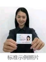 (2)拍摄时,手持本人身份证,将持证的手臂和上半身整个拍进照片。姿态端正,双眼自然睁开并平视,耳朵对称,嘴唇自然闭合,左右肩膀平衡,头部和肩部要端正;