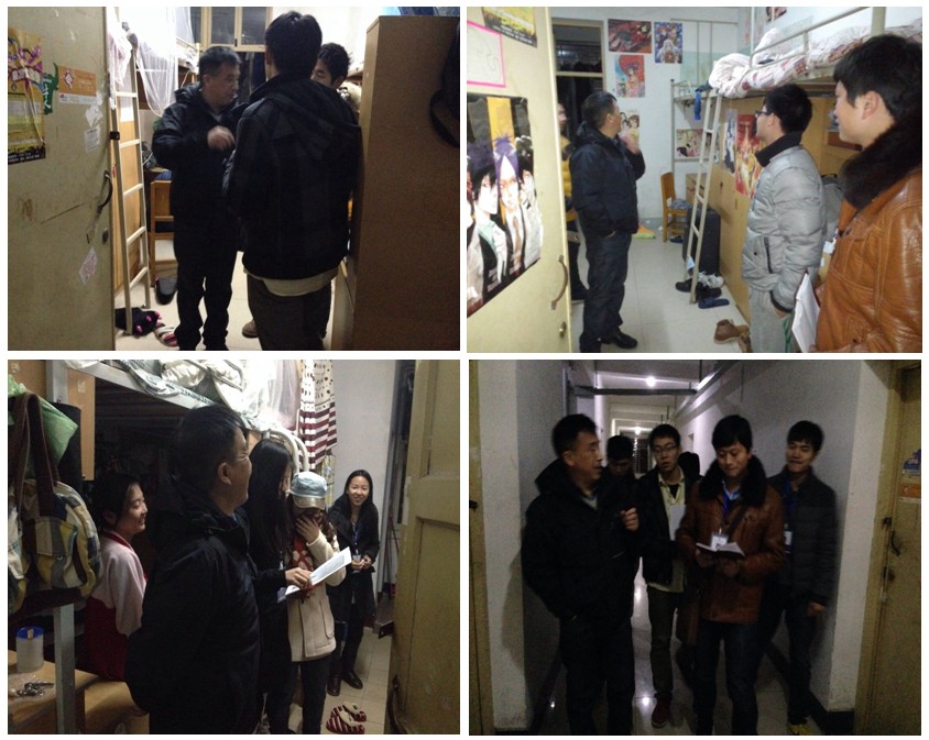 2013年12月17日晚上,研究生院党委副书记、副院长吴四德老师组织研究生会学生干部深入学生宿舍,对部分研究生寝室进行安全卫生检查,并热心了解学生情况。