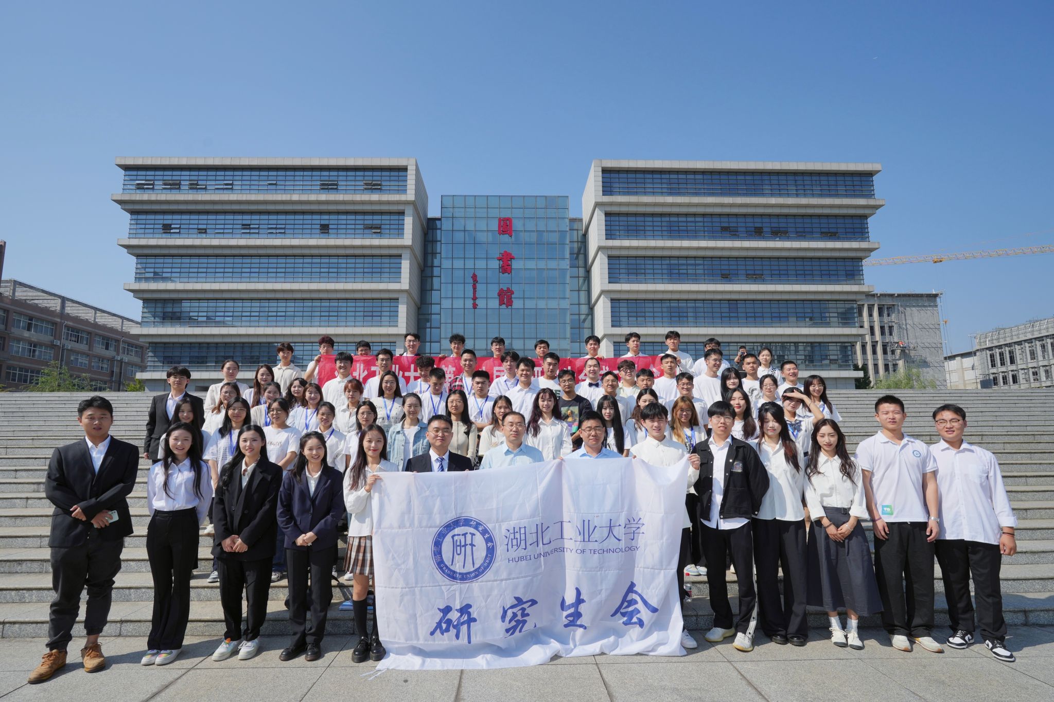 会议最后,宋发佳老师宣布湖北工业大学第十八届研究生会正式成立,大会在一片掌声中落下帷幕。成立大会结束后,研究生会全体成员在图书馆前阶梯合影留念。