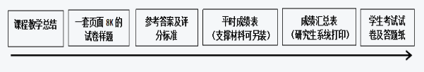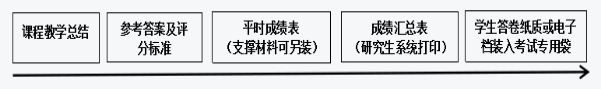 1.所有课程考核材料要求统一装袋,研究生论文若存在多个研究生合作完成的情况,须注明每人所承担的内容。各类考核试卷装订顺序及要求如下图所示: