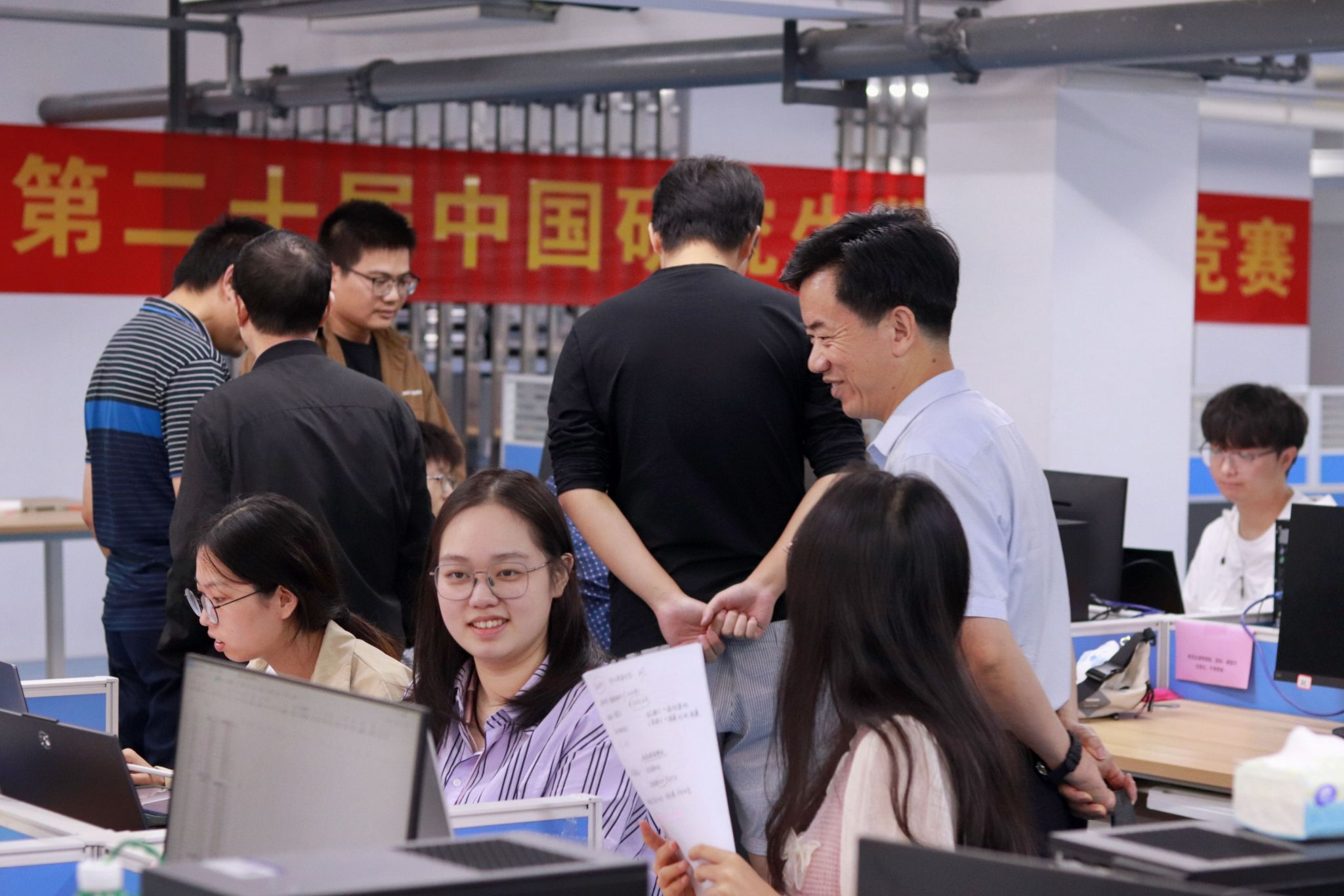 随后,宋小春与参赛学生深入交流,鼓励学生在参赛过程中,要充分利用所学知识,准确研判赛题,紧密团结协作,坚持不懈,攻坚克难,以最佳的状态完成竞赛。同时,他叮嘱参赛学生在比赛中注意休息,劳逸结合,预祝同学们取得优异成绩。参赛同学们纷纷对学校的关心表示感谢。