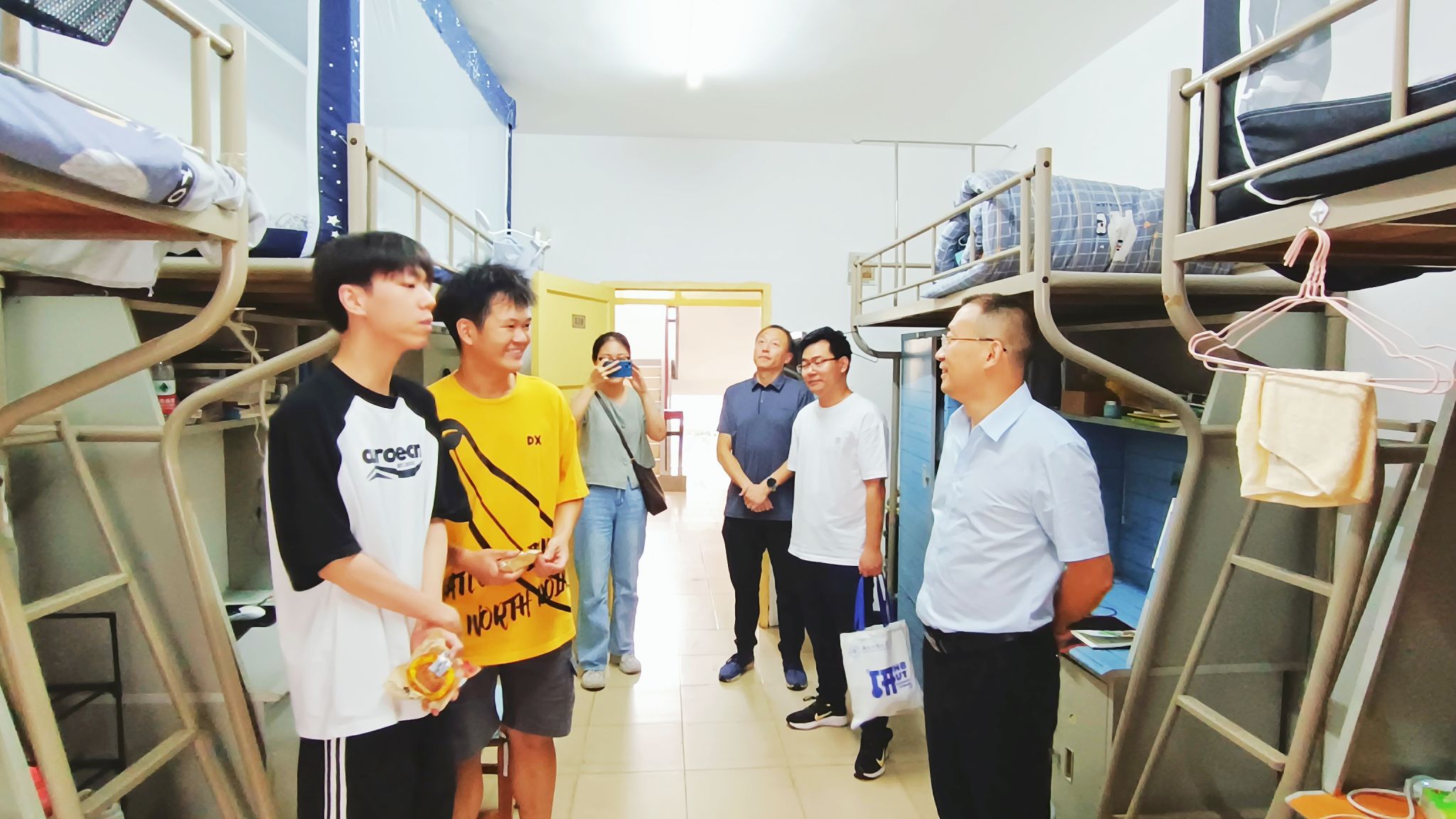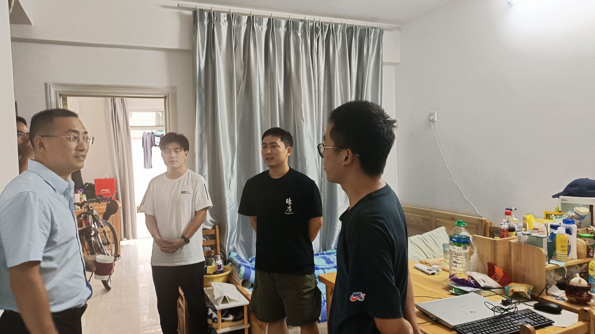 走访过程中,老师们和同学们进行了的亲切交谈,询问大家日常的学习与生活情况,了解学生假期去向和安排,并给大家分发月饼,祝愿大家节日快乐,同时叮嘱大家在假期期间一定要注意交通出行安全、警惕电信网络诈骗,提醒同学们要共同维护宿舍环境,构建优良学风。