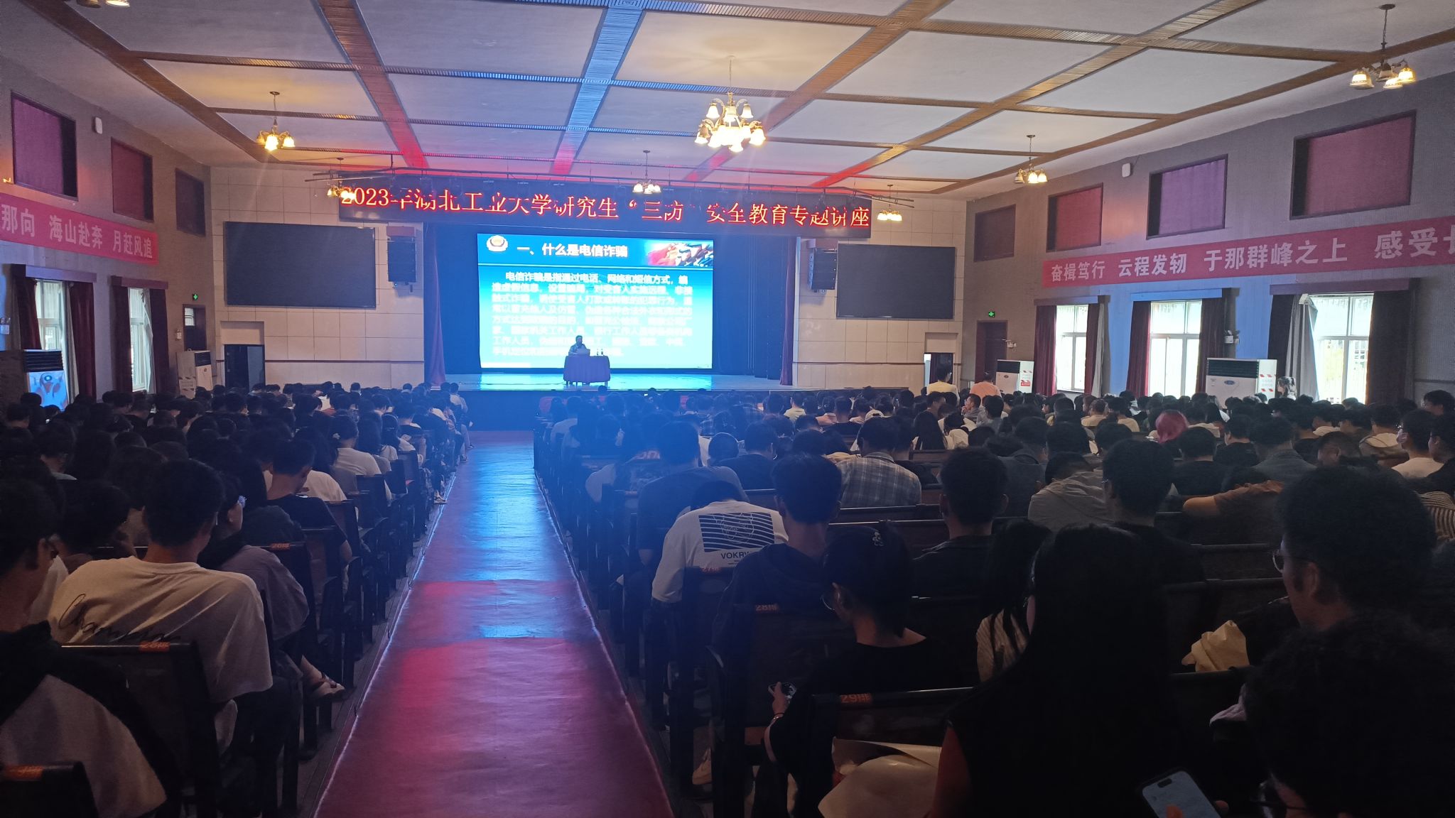 本次讲座特邀南湖派出所郭锋警官就“网络电信诈骗”、“实验室安全”和“消防、交通安全”三个专题对研究生进行安全培训。培训中,郭锋警官通过鲜活的案例,详细讲解了如何有效识别各类电信诈骗及应对措施;细致讲述了实验室规范操作的原则和突发情况处理的流程;重点强调消防、交通安全的有关注意事项和应急情况自救办法。郭锋警官生动的讲解给在场800多名研究生们留下深刻的印象,在座同学纷纷表示,此次安全教育主题活动进一步增强了安全防范意识,掌握了必要的安全知识和技能,对提高自我保护能力起到了积极的作用。