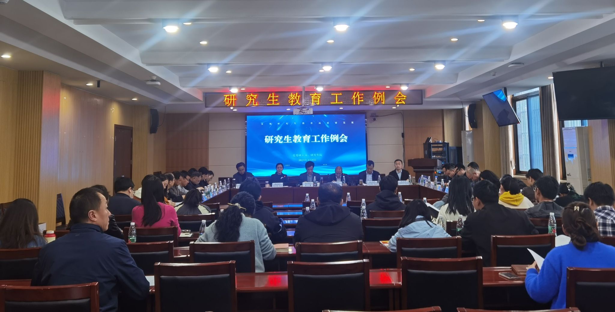 4月8日下午,学校在行政楼一楼会议室召开研究生教育工作会议。校党委常委、副校长宋小春,校党委常委谭佐军出席会议,党委研工部和研究生院全体人员、各学院研究生工作分管领导、教学秘书以及辅导员参加会议。会议由校党委常委谭佐军主持。