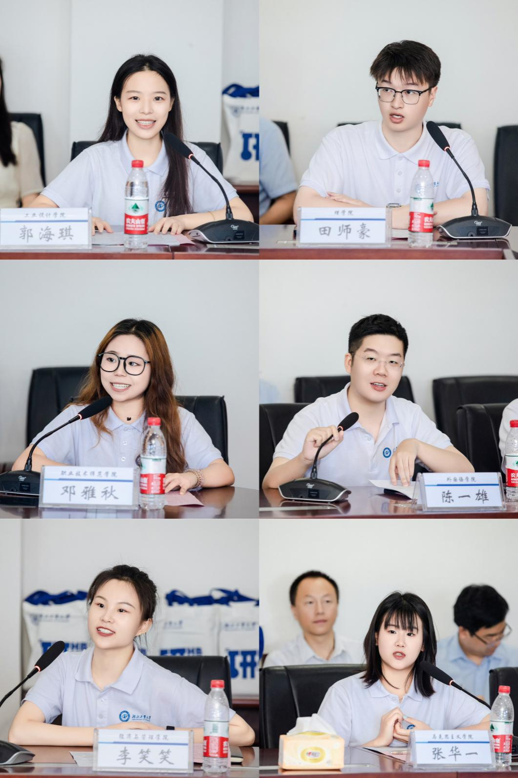 学校办公室、党委组织部、党委宣传部、团委、发展规划与学科建设处、财务处、社会资源处、党委研工部、研究生院等职能部门负责人对同学们取得的成绩表示祝贺,对同学们即将逐梦未来表示祝福,并就同学们提出的问题和建议进行了热烈交流。