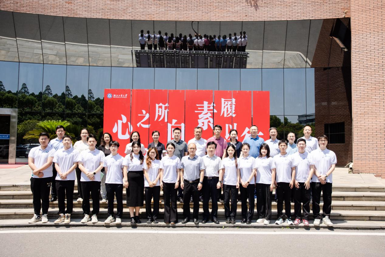 活动最后,宋小春和肖衡林还为与会毕业研究生代表送上了温馨的毕业纪念品。纪念品手提袋由研究生学子自己设计,纪念品是有学校建筑元素的茶杯,象征着母校对同学们的深切关怀和温暖祝福。