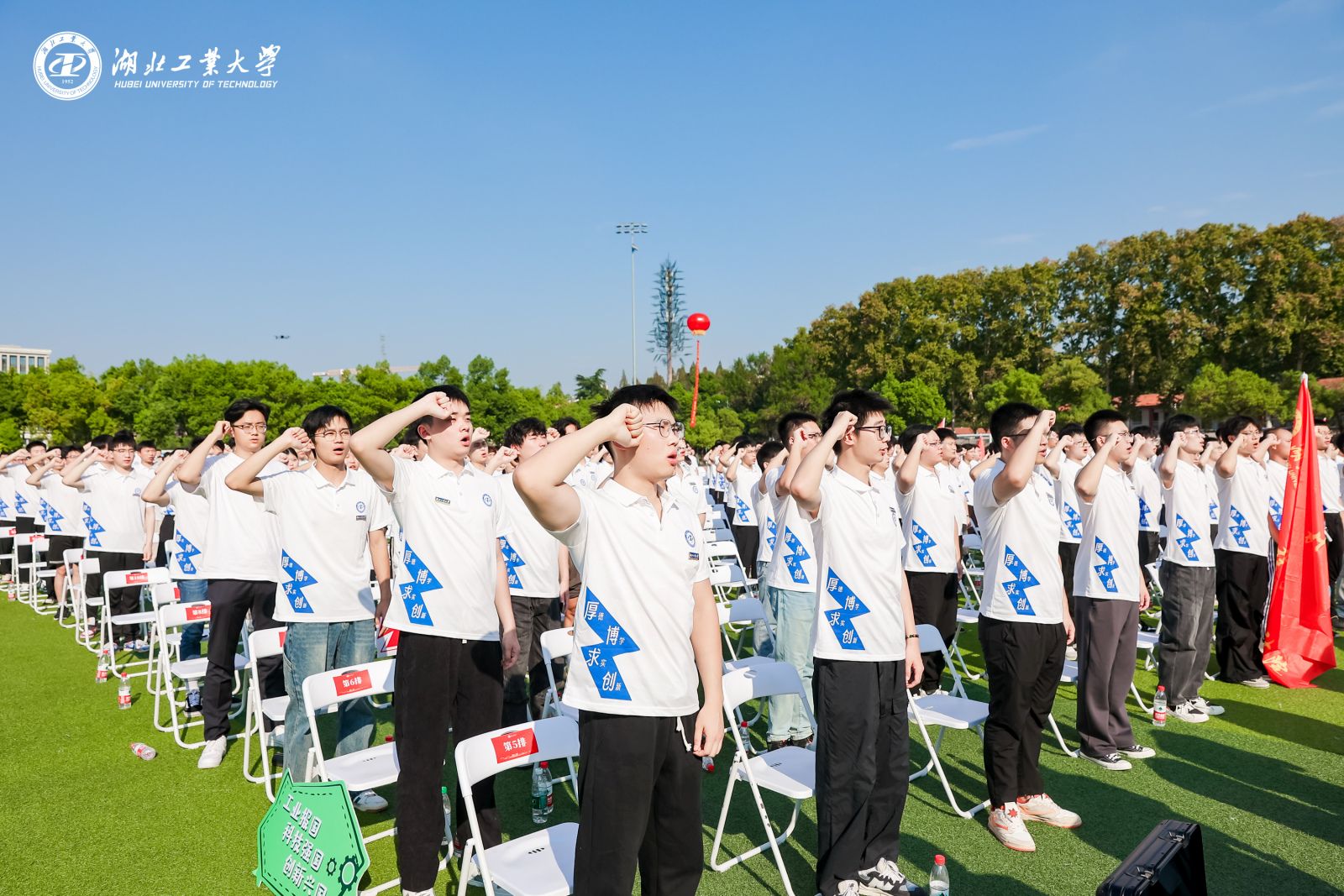 在校研究生会主席团成员的带领下,全体新生高举右拳,进行了庄严的入学宣誓。铮铮誓言铿锵有力,回荡在田径场上空,激励着每一位新生不忘初心,肩负时代使命。