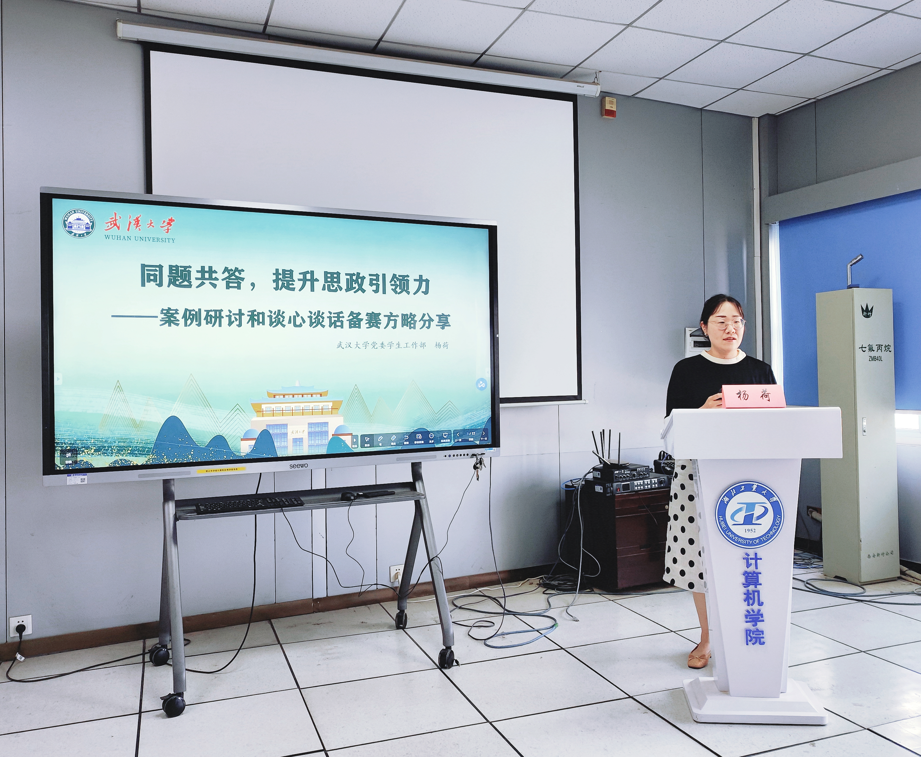 6月6日下午,由党委研究生工作部主办、计算机学院承办的研究生辅导员专题培训(第四期)在科技楼401成功举办,本次专题培训主题为“辅导员案例研讨和谈心谈话专题培训”。武汉大学党委学工部思想政治教育办公室主任杨荷作为特邀嘉宾作专题辅导报告。计算机学院党委副书记杨少飞主持会议。