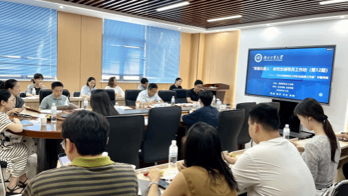9月12日下午,由党委研究生工作部主办、生命科学与健康工程学院和艺术设计学院承办的“青春引路人”研究生辅导员工作坊(第12期)在轻工楼A716成功举办。本次主题是对2024年立项的“研究生工作队伍品牌工作室”建设项目进行中期考核,党委研究生工作部副部长黄华、研工部工作人员、全体研究生辅导员参加活动。