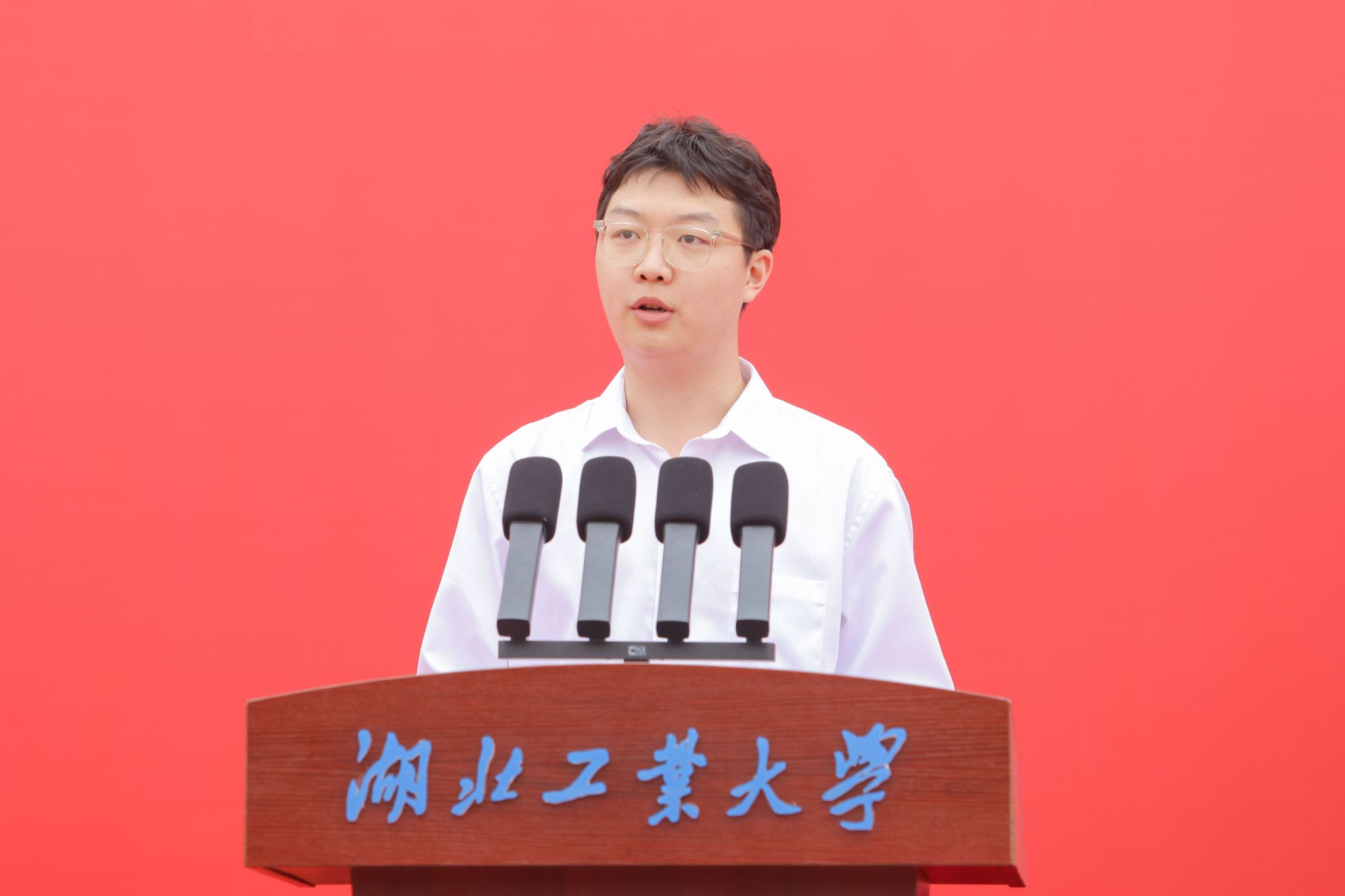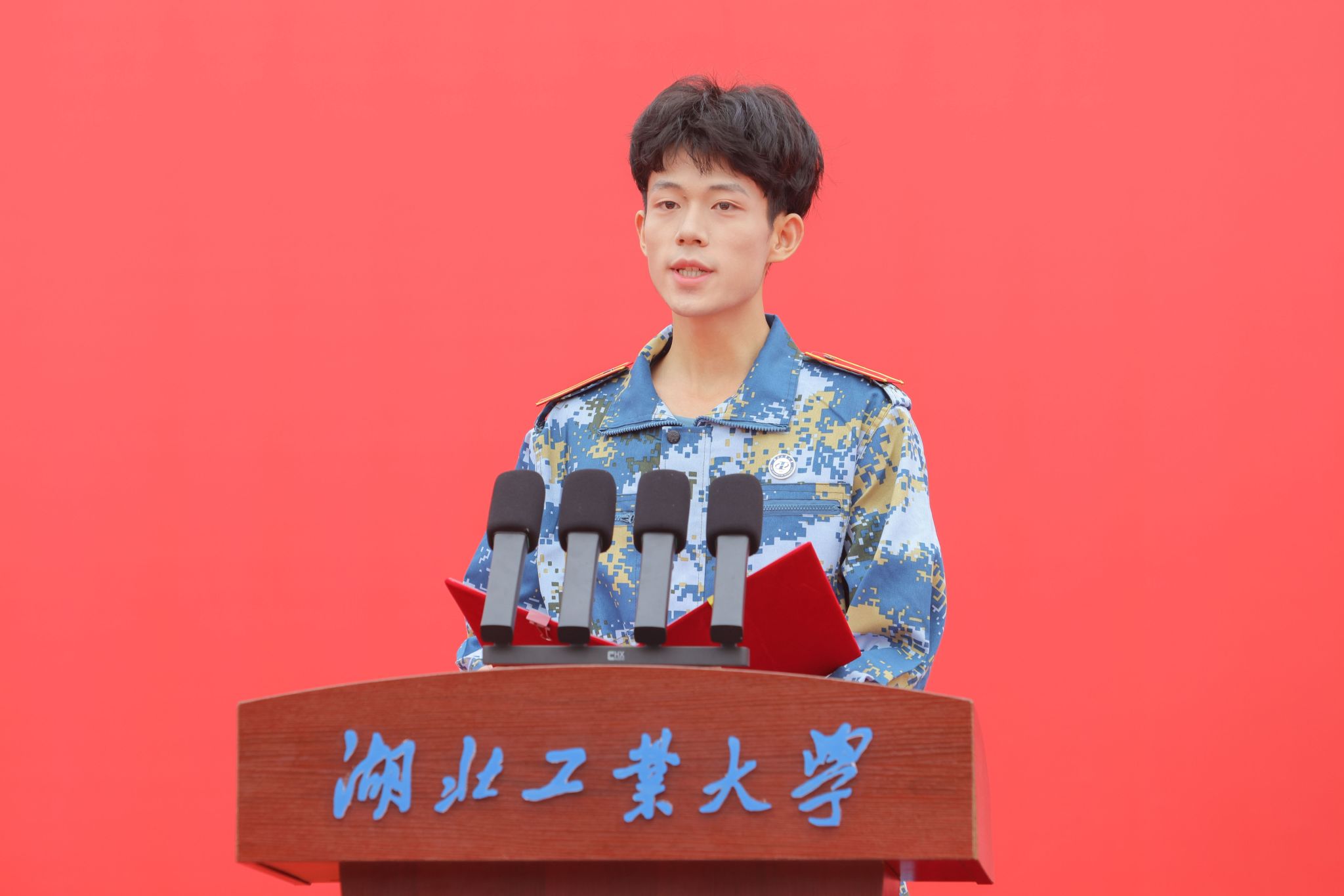 本科生新生代表李敬阳同学讲述了他选择湖工大的缘由,并代表全体本科新生郑重表态:以“匠心”为尺,淬火成金;以“创新”为刃,开辟新境;以“担当”为锚,行稳致远,练就扎实专业能力,践行“强国有我”的无悔担当。