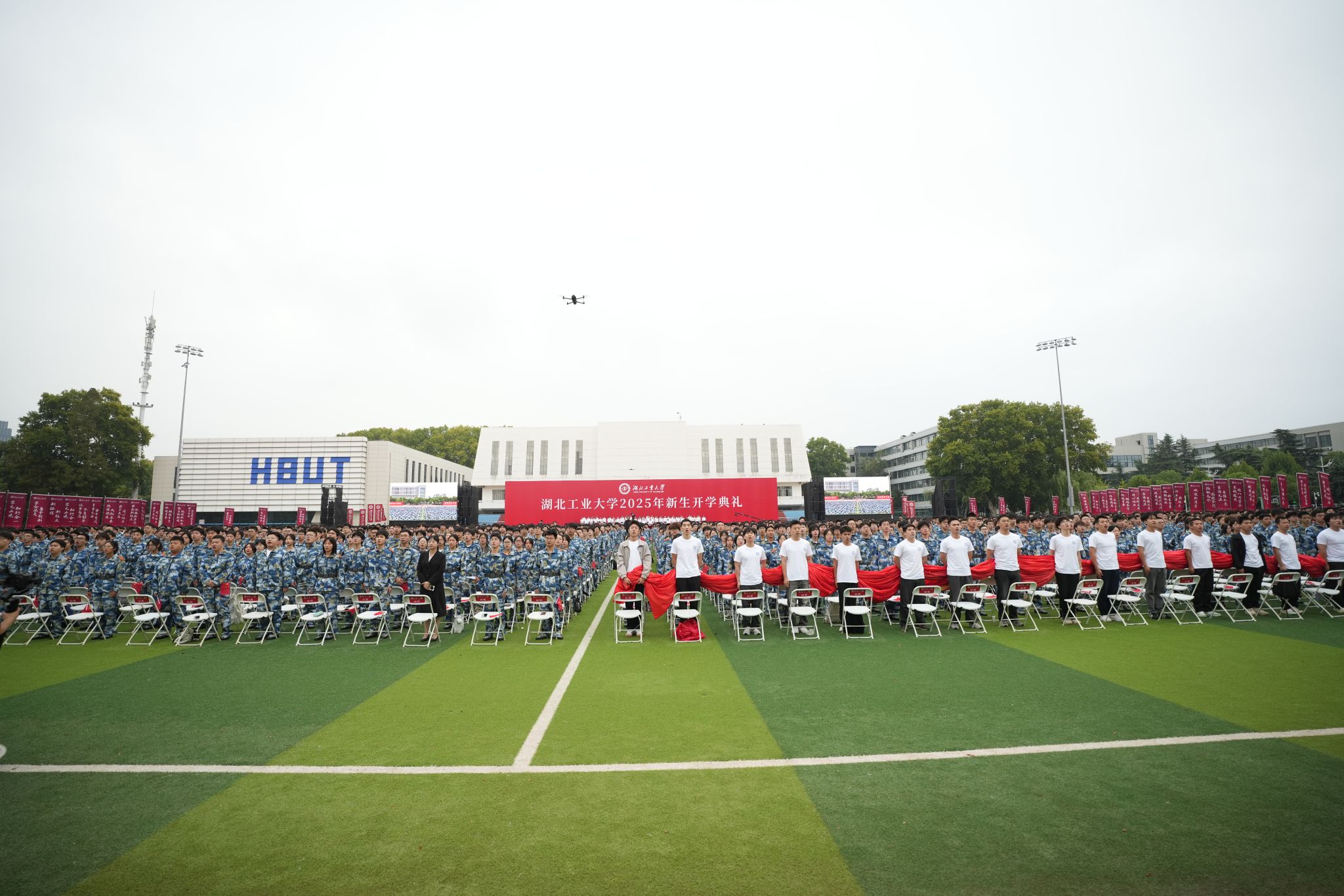 最后,全场8000余名师生同唱《歌唱祖国》共同庆祝中华人民共和国76周年华诞。开学典礼在激昂雄壮的歌声中圆满落下帷幕,歌声嘹亮,响彻校园,表达了湖工大人对伟大祖国的深切热爱与美好祝福,彰显了新一代青年学子立志报国、奋发有为的坚定决心。