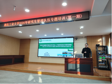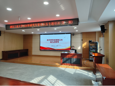 1月12日下午,研究生管理队伍2026年专题培训第一期在行政楼一楼会议室顺利举行。本次专题培训以“研究生安全管理工作和科创工作分享交流”为主题,由党委研工部部长关向娟主讲。研工部相关领导、各学院分管研究生工作院领导、全体研究生辅导员参加培训。