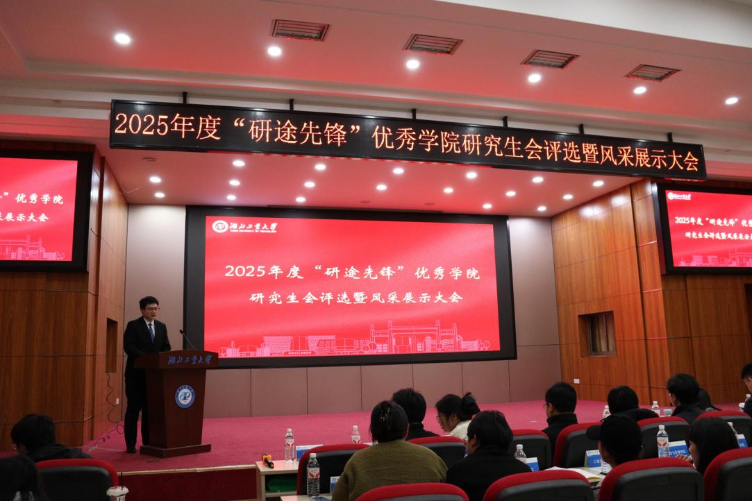 3 月 18 日下午,学校 2025 年度 “研途先锋” 优秀学院研究生会评选暨风采展示大会在博学堂圆满完成。党委研工部相关老师、各学院研究生会指导老师、校研究生会骨干和 13 个学院研究生会骨干共同参加本次活动。活动由校研究生会主席团成员王鑫和刘志豪主持。