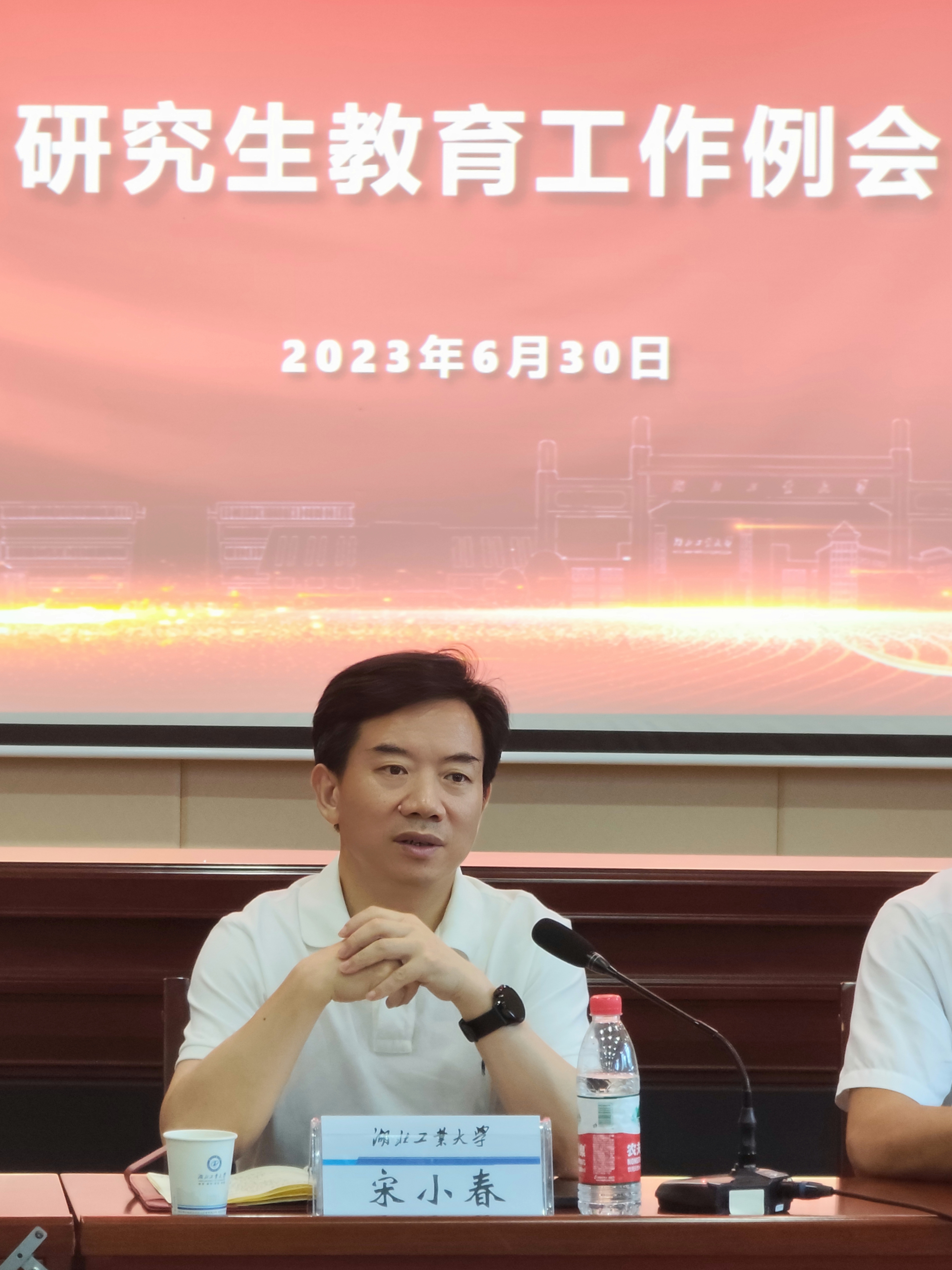 宋小春作总结讲话并提出三个要求:一是要进一步提高思想认识。要充分认识新时代研究生教育的战略地位和历史使命及其重要性和紧迫性,感受到党和国家对研究生教育工作的高度重视。党的二十大报告首次将教育、科技、人才一体化部署,学校要将其落实到行动中来。此外,学校研究生规模发展迅速,预计“十四五”期间研究生人数将达1万人,这也对研究生培养管理工作提出了更高要求。本科教育是基础,研究生教育是高度,有为才有位,必须提高政治站位,打好思想基础。二是要进一步规范研究生培养体系和培养过程。学校研究生人数规模上升较快,研究生培养内涵也要跟上,要进一步加强研究生培养过程管理,一方面要规范组织架构,明确工作职责,专项工作由专人来做;另一方面要重视培养体系建设,导师是研究生培养第一责任人,导师队伍要抓实,要加强导师培训、督导等工作,增强导师责任感、使命感和荣誉感,让导师将精力放在学生培养上。三是要进一步推进研究生培养模式改革。培养模式改革是研究生教育工作的重点,要据此提高研究生培养质量,积极开展教育项目申报和实验平台搭建等工作,向优秀院校学习,树标杆,找差距,补短板,抓落实,重视平台积累,努力培育出下一个国家级的研究生教育成果奖,不断提升研究生培养质量。