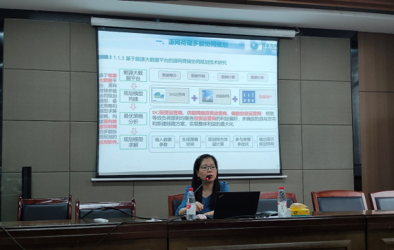 侯慧副教授长期致力于电力系统安全风险评估、能源互联网等方面的研究。此次报告,主要从四个方面分享了她及团队的相关研究内容和成果。首先在电力系统规划层面阐述面向能源互联网的源网荷储及多能协同规划技术;之后在电力系统运行层面,以荆门配电网为例讲解面向新型电力系统的配电网升级转型研究;其次,在电力市场层面,阐释电力辅助服务市场及电力现货市场联合的多能微网P2P交易优化方法;最后,面对频发的自然灾害对新型电力系统安全稳定造成的影响,力图打造电力气象服务统一门户,提出输电防灾减灾大数据算法研究及其应用。侯慧副教授解答了部分师生的提问,从源网荷储多能协同规划技术、我国电力辅助服务市场现状、研究生培养、期刊论文撰写及发表等方面介绍了自己的经验。