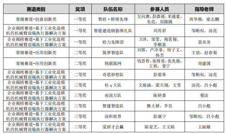 征程万里风正劲,重任千钧再出发!祝贺所有获奖的师生团队!愿土环学子以此次获奖为契机,继续深耕智能建造领域,在科技创新的道路上勇攀高峰,为国家工程建造产业转型升级贡献青春力量!