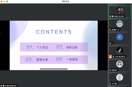 会议中,2020级校友肖媛和张凡深入分析了教师编笔试和面试的考察内容以及难点,并分享了获取信息资源的途径以及在求职过程中积累的宝贵经验。她们提醒大家要提前规划,并鼓励同学们在面试过程中要保持稳定的心态,坚持到底。