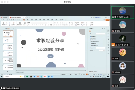 随后,目前就职于湖北省孝昌县文化和旅游局的王铮瑶同学从就业方向、就业信息、就业行动以及就职注意事项四个方面分享了经验。这些宝贵的经验对参加讲座的在校研究生有着非常大的借鉴意义。