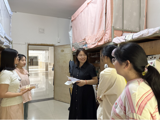 9月15日,正值中秋佳节和新学年开学之际,为深入了解我院新生住宿和生活近况,帮助新生适应新的人生阶段,外国语学院院长鲁修红、副院长李池利及研究生辅导员陈斯亮一行深入走访研究生新生宿舍,与2024级新生深入交流并送上中秋慰问。