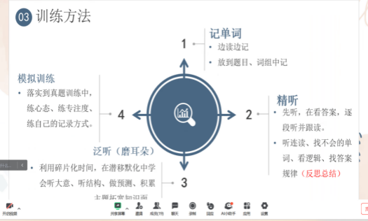 最后,23级学生代表进行了英语六级考试经验分享。郝冰就英语作文提出了审题准确、结构清晰、语言丰富的写作策略;朱晓清分享了阅读理解的答题技巧,包括快速定位关键词和逻辑分析;王品通过翻译真题分析,讲解了词汇、语法、句式和文化差异的应对策略;王彦乔则在听力技巧上给出了预读选项、同义替换等实用建议,并推荐了多种听力训练方法。
