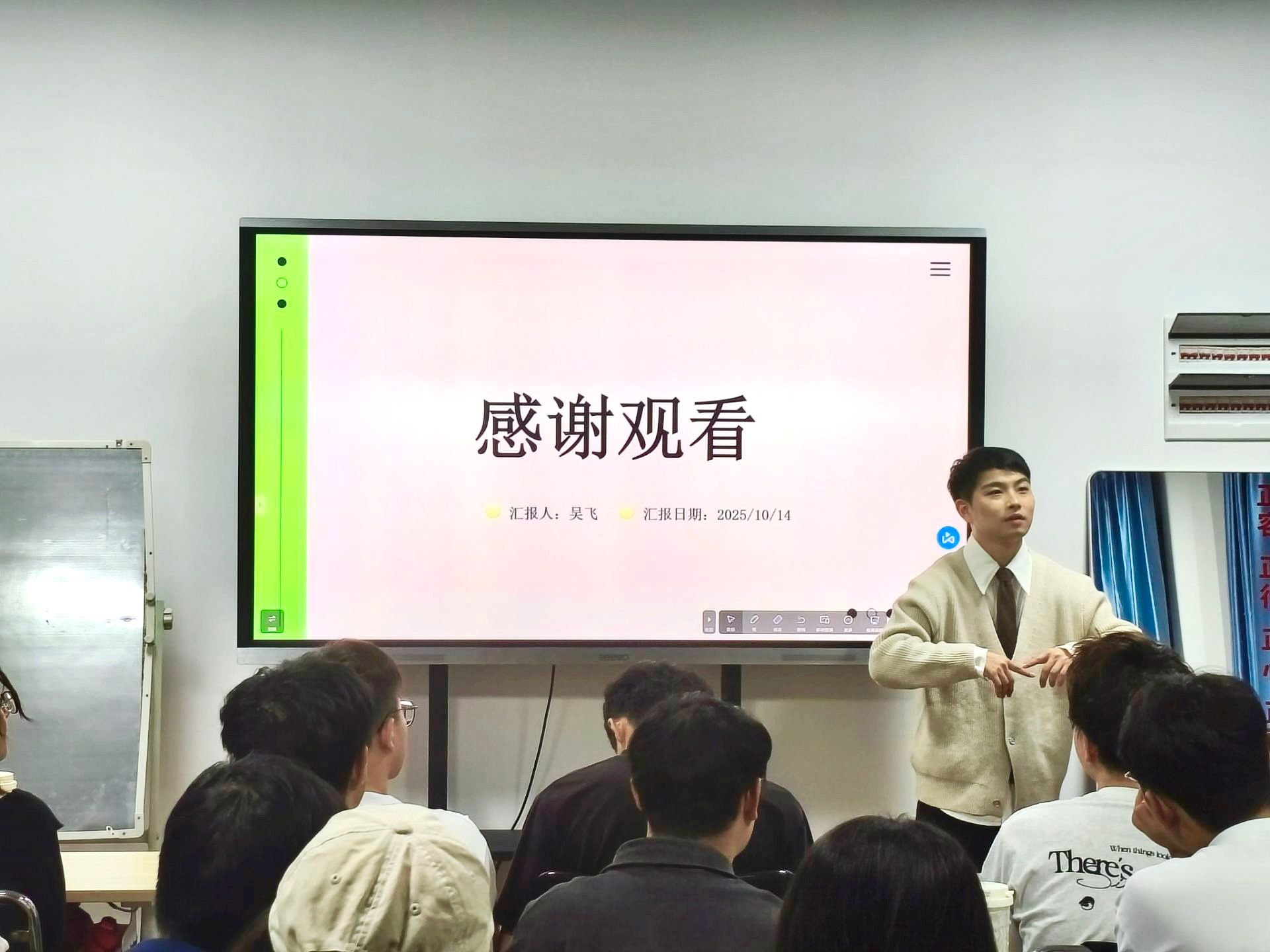 分享尾声,吴飞感谢学校提供的宝贵交换学习机会,同时也鼓励同学们积极参与此类交流访学活动,开阔眼界、增长见识。研究生辅导员周越超老师介绍了“国际项目申请流程”和“语言准备技巧”等,为希望参与海外游学的同学们解疑答惑。