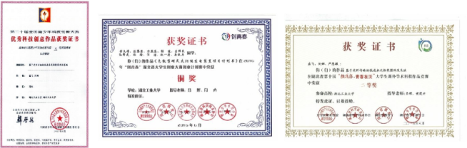 如:盛飞、黄文娟等人参加多项科技创新竞赛(全国青少年科技创新大赛、创青春大学生创业大赛、挑战杯·青春在沃大学生课外学术作品大赛等)并取得较好成绩。