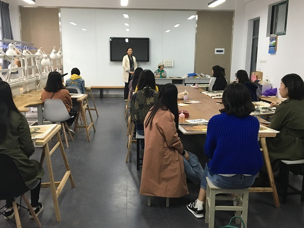 近日,由湖北省工艺美术研究所高级工程师、湖北省汉绣传承大师杨晓婷女士带领自己的汉绣团队,走进艺术设计学院公共艺术设计方向艺术硕士MFA课堂,讲授汉绣的历史、刺绣的基本要领和创作方法等。她与学院手工艺PI团队负责人王欣老师联合授课,让部分MFA艺术硕士在聆听着大师的教诲的同时,动手做着设计。本学期还有湖北省文物交流信息中心李奇来我院开办古陶瓷修复技艺培训、高级工艺美术师韩骥及其团队来我院开办“古法琉璃脱蜡铸造技艺培训班”、武汉左堂建筑装饰设计工程有限公司董事长左世宏和师生一起讨论吉庆街改造设计方案等。