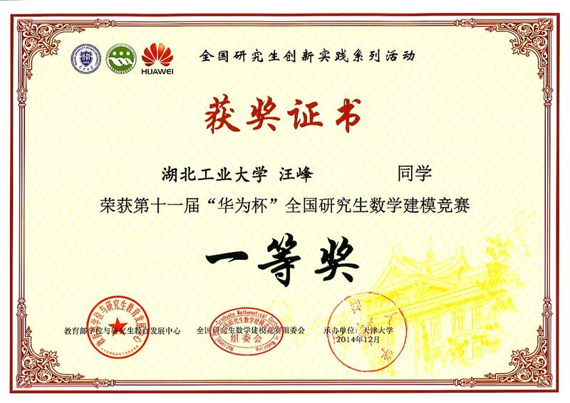 我校研究生从2013年开始,数学建模竞赛取得了较好成绩,2013年获全国一等奖1项、二等奖1项、三等奖3项;2014年获全国一等奖1项、二等奖4项、三等奖1项;2015年获全国二等奖5项、三等奖5项。